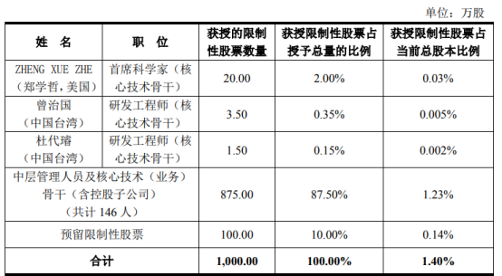 一、擬獲授限制性股票的激勵(lì)對(duì)象總體名單